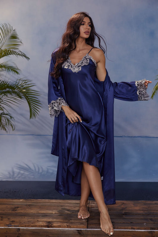 Dankay Solid Color High Quality Satin Luxury Long Silk Nightdress 2 pcs Robes Set